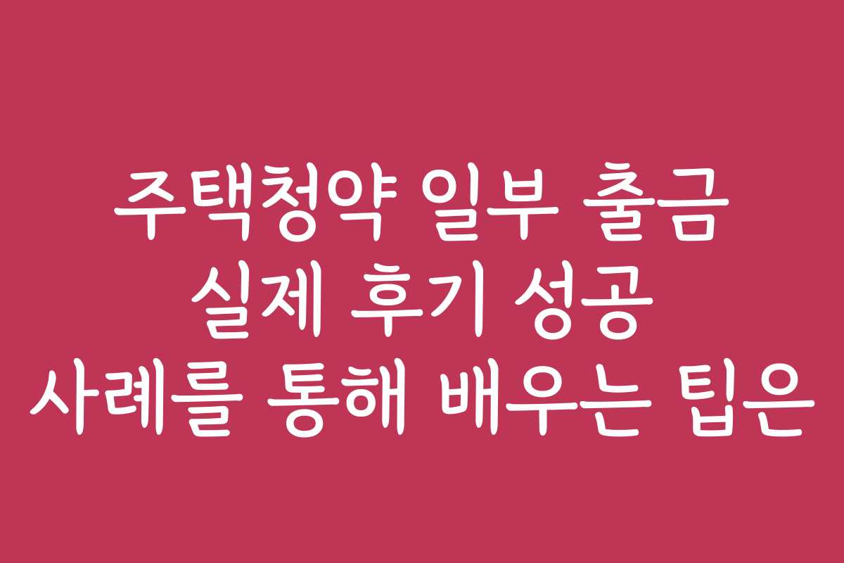 주택청약 일부 출금 후기, 성공 사례에서 얻은 꿀팁은?