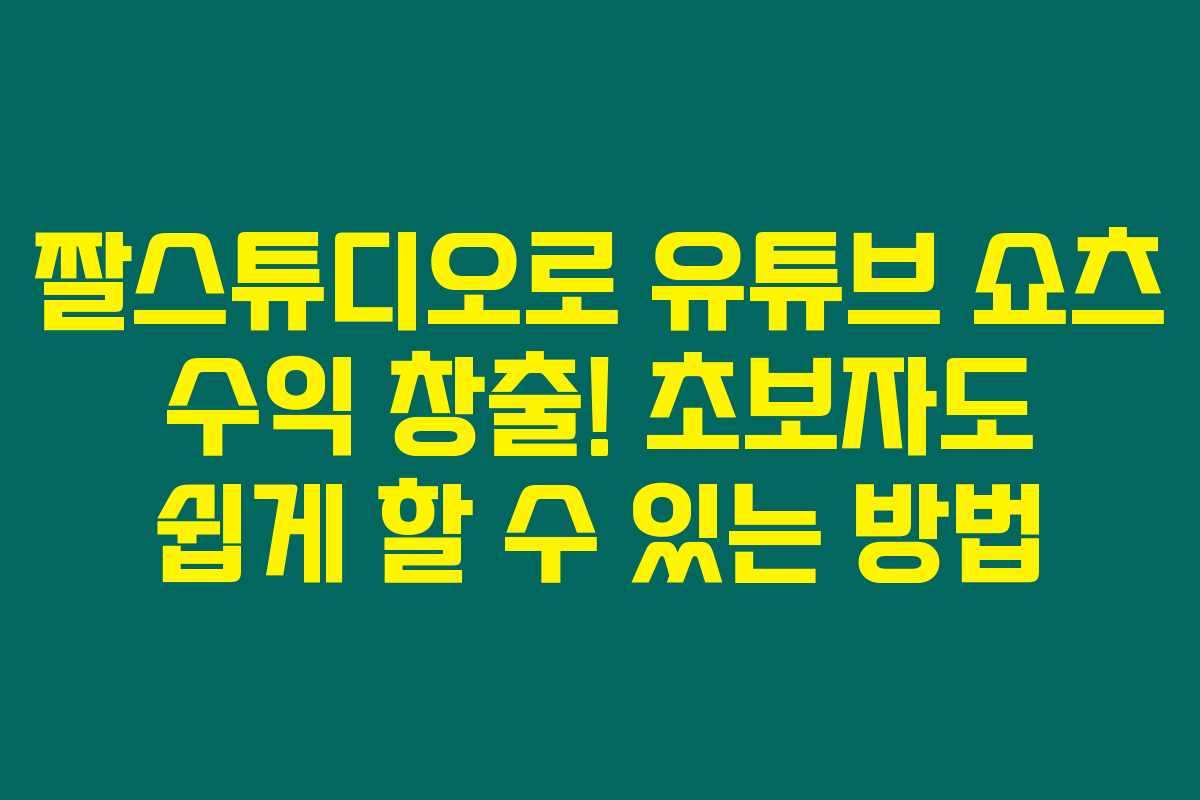 짤스튜디오를 활용한 유튜브 쇼츠는 수익 창출의 새로운 기회를 제공합니다. 초보자도 쉽게 접근할 수 있어, 수익을 올리는 재미를 느낄 수 있습니다. 지금 바로 시작해보세요!