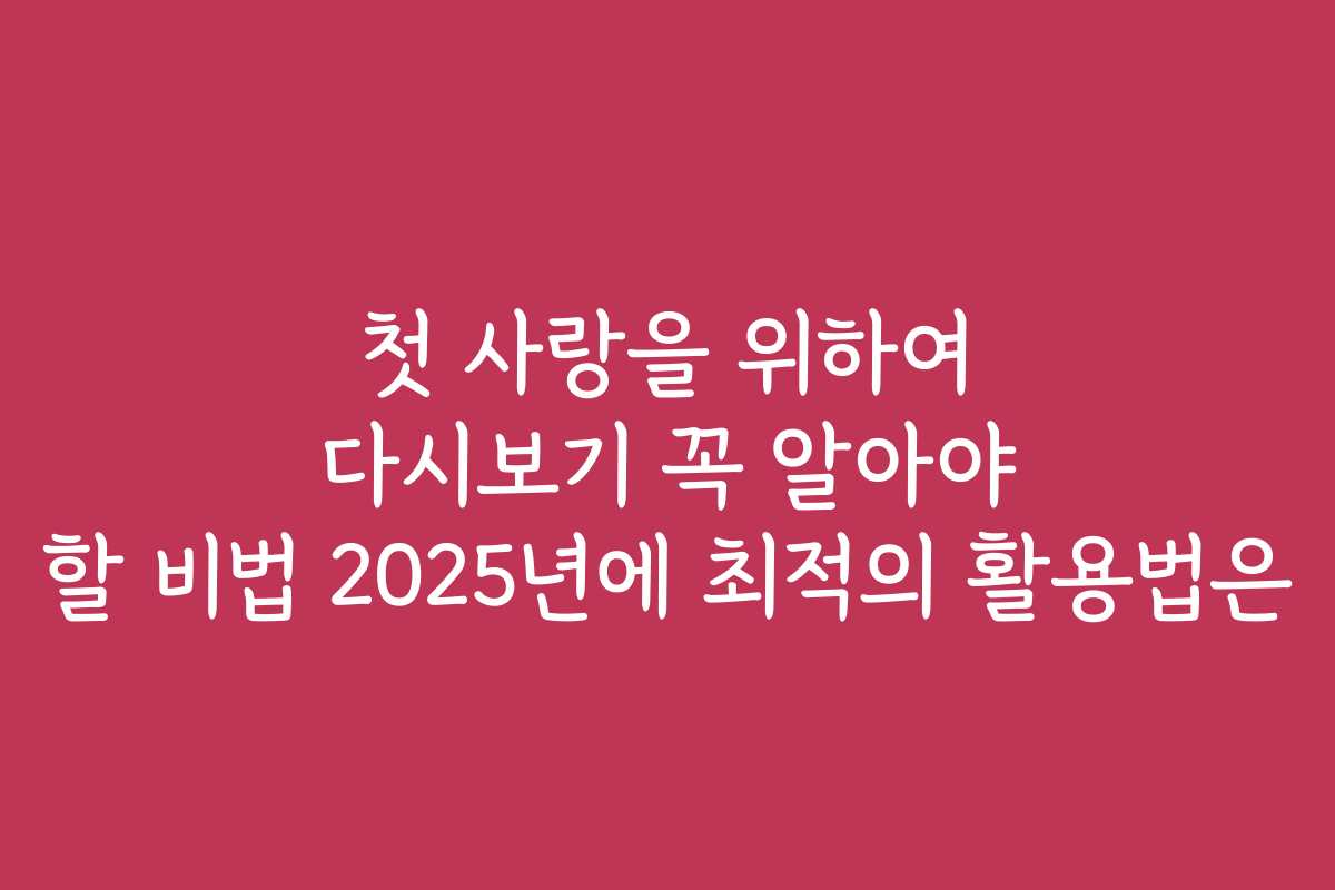 핵심 키워드: 첫 사랑, 다시보기 비법, 감정 회상, 서비스 추천, 추억 여행, 첫 사랑의 의미, 실전 가이드, 콘텐츠 활용, 여행 서비스, 비교 분석, 후기