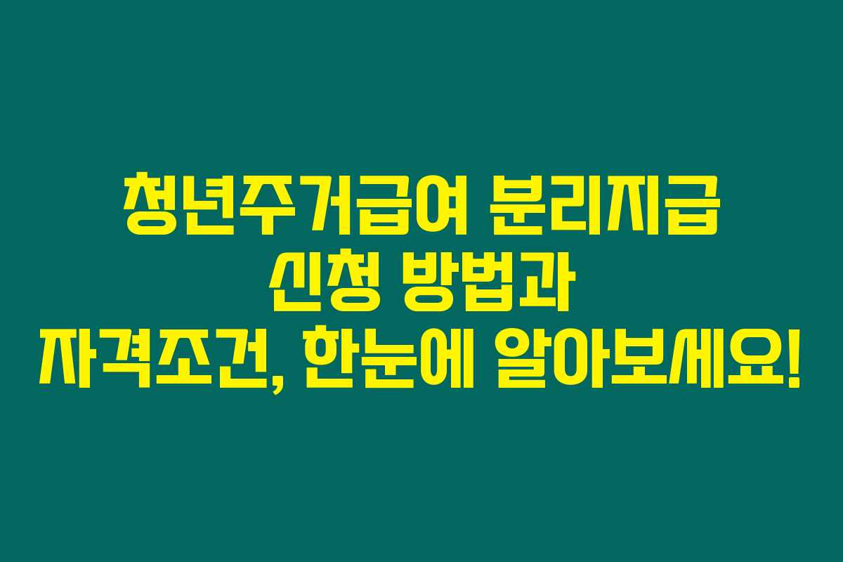 청년주거급여 분리지급을 받기 위해서는 아래 조건을 모두 만족해야 합니다. 제가 직접 체크해본 결과, 다음의 조건들을 충족해야만 신청이 가능합니다.