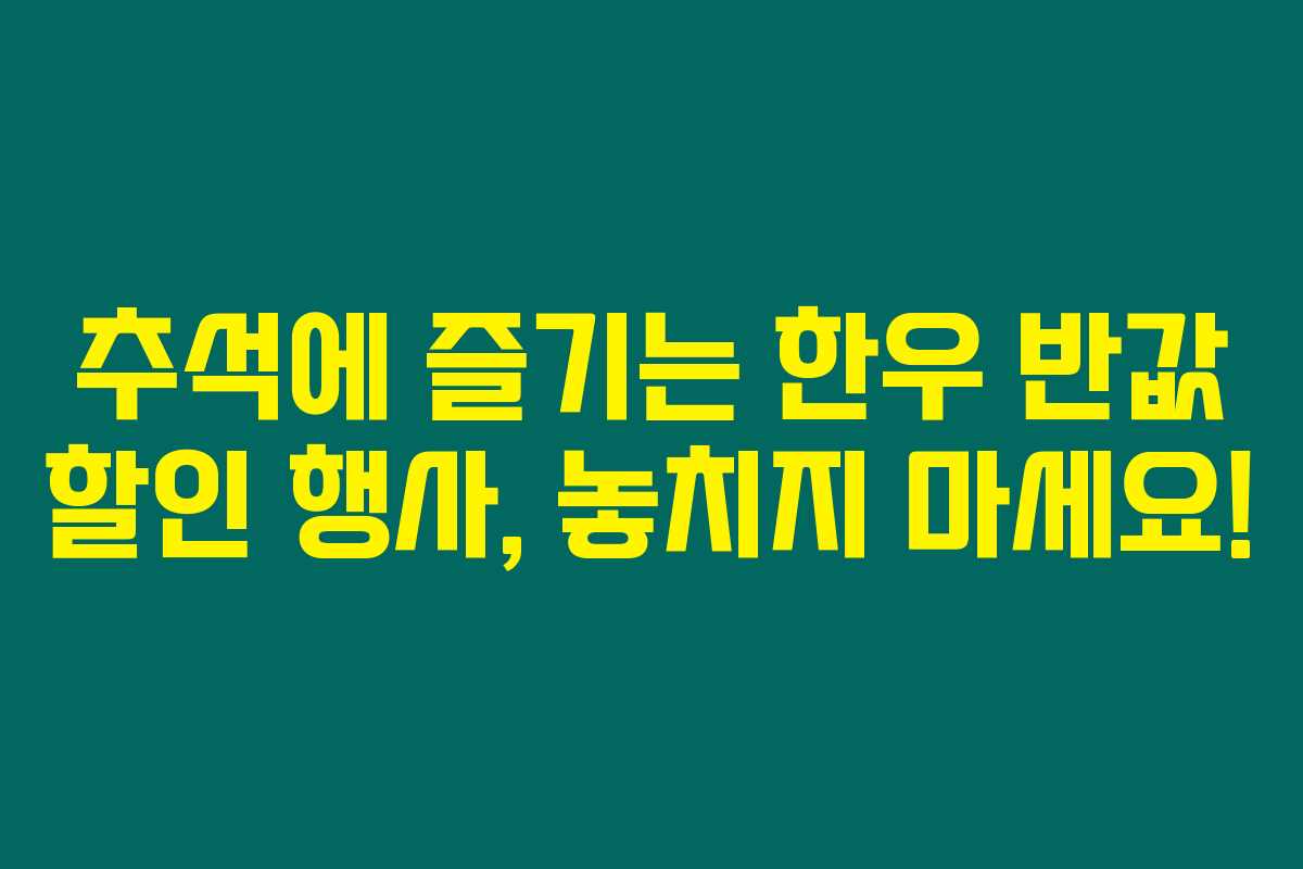 제가 직접 체크해본 바로는, 이번 추석을 맞아 전국의 대형마트와 하나로마트에서 진행되는 한우 반값 할인행사가 굉장히 큰 인기를 끌고 있어요. 한우를 최대 50%까지 할인받아 구매할 수 있는 기회는 정말 매력적이지요! 아래를 읽어보시면, 행사 일정과 참여하는 매장에 대한 정보를 확인할 수 있습니다.