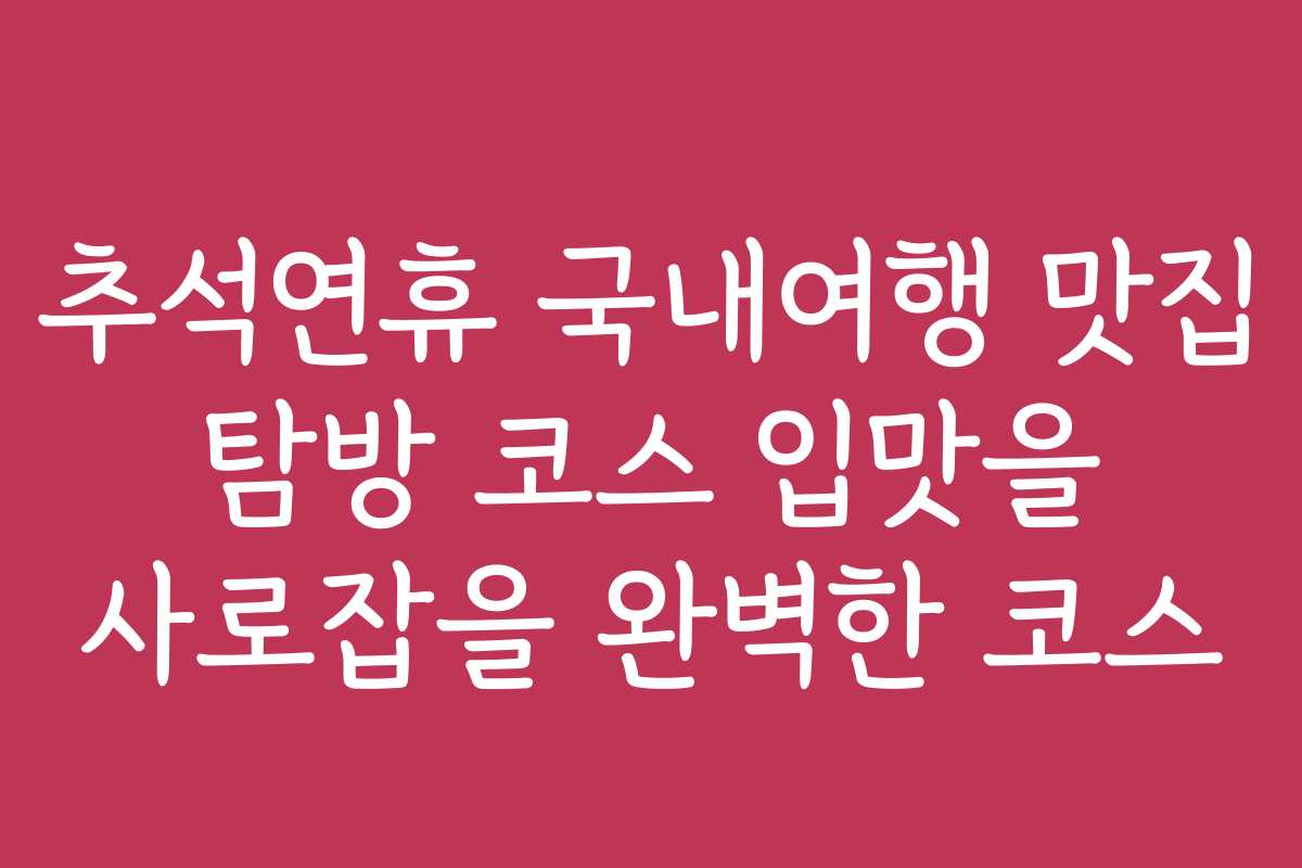 추석연휴 국내여행 맛집 탐방 코스 입맛을 사로잡을 완벽한 코스