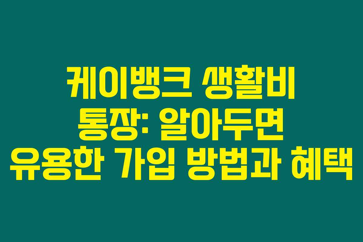 케이뱅크의 생활비 통장은 연 3.0%의 안정적인 금리를 제공하며, 여러가지 비즈니스와 사용자의 접근 편의성을 고려한 혜택을 겸비하고 있습니다. 이번 글에서는 케이뱅크 생활비 통장과 체크카드의 가입 방법 및 그 혜택에 대해 자세히 알아보겠습니다.