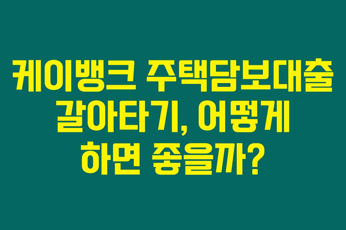 최근 많은 분들이 케이뱅크 주택담보대출을 선택하고 있습니다. 그 이유는 저렴한 금리와 간편한 비대면 절차 덕분이죠. 특히, 이제는 기존 대출의 금리를 비교하고 더 유리한 조건으로 갈아타는 것이 점점 더 중요해지고 있는데요, 아래를 읽어보시면 금리, 신청 방법 및 유의사항을 자세히 알아보실 수 있습니다.