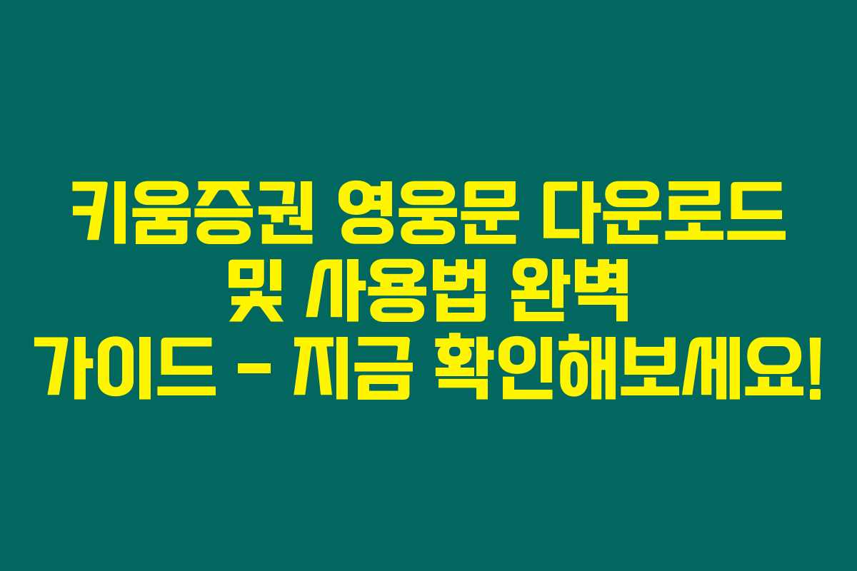키움증권 영웅문은 주식 거래를 더욱 쉽고 빠르게 만들어주는 훌륭한 도구입니다. 주어진 가이드를 통해 다운로드와 사용법을 익힐 수 있으니, 적극 활용해 보시기 바랍니다!