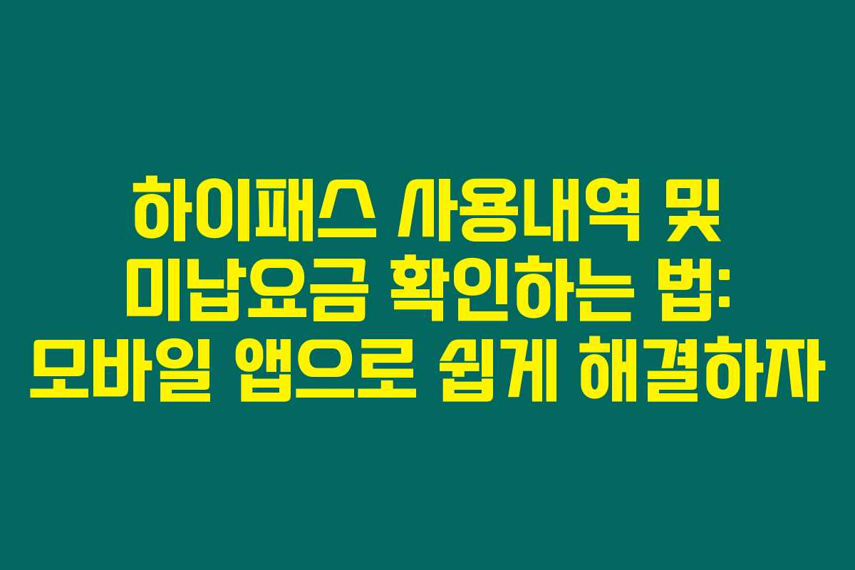 하이패스를 사용하다 보면 종종 결제가 제대로 되지 않는 경우가 있습니다. 이런 상황에서 하이패스 사용내역과 미납요금을 어떻게 확인하고 결제할 수 있는지, 모바일 앱을 통해 간편하게 알아보세요. 아래를 읽어보시면 모바일 앱 하나로 모든 하이패스 관련 문제를 해결할 수 있습니다.