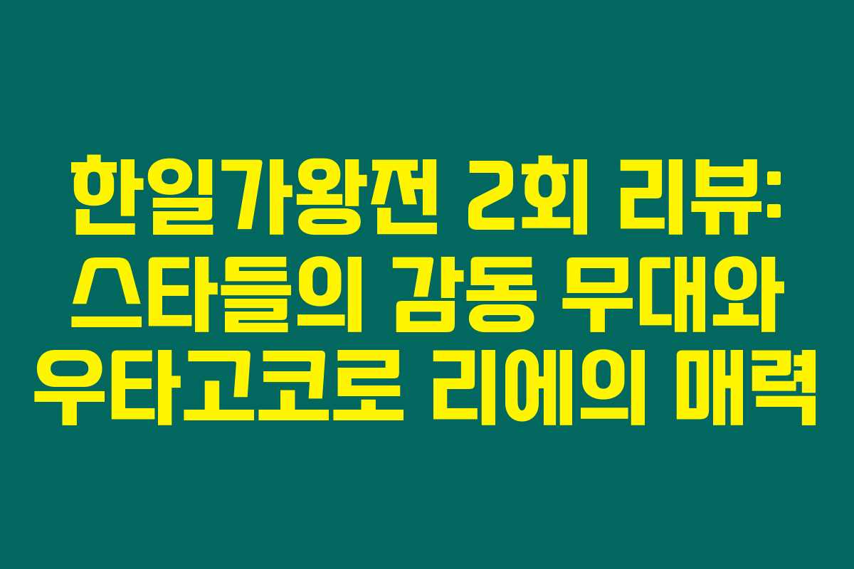 지난 2회 한일가왕전(日韓歌王戰)을 보셨나요? 정말 기대 이상의 무대가 펼쳐졌어요. 이 글에서는 예선 1위 우타고코로 리에의 겨울연가 OST와 마코토의 약속에 대한 감상, 그리고 실시간 시청 방법과 다시보기 정보를 드릴게요. 아래를 읽어보시면 이번 방송의 하이라이트를 놓치지 않고 즐길 수 있을 거예요.