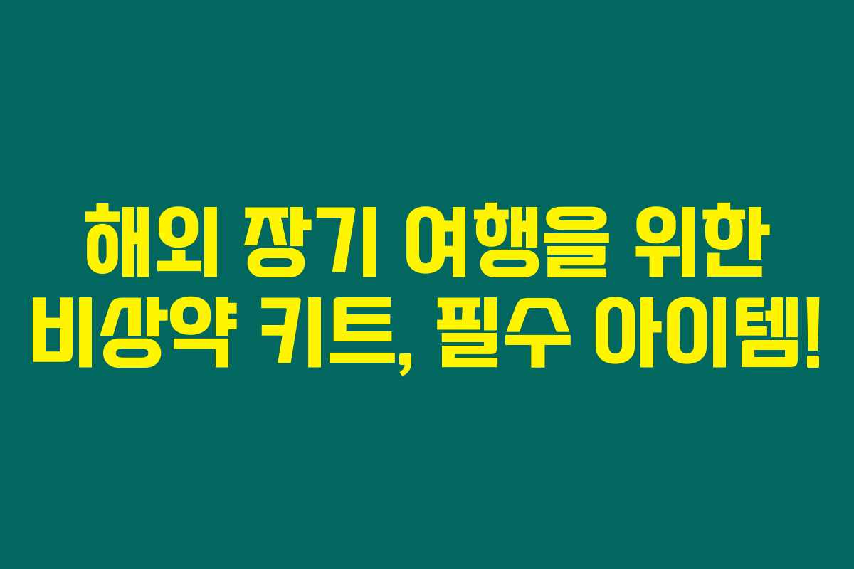 제가 알아본 바로는, 해외 장기 여행을 준비하면서 가장 중요한 것 중 하나가 바로 비상약 키트입니다. 여행지에서의 예상치 못한 질병이나 부상은 여행의 즐거움을 빼앗을 수 있기 때문이에요. 아래를 읽어보시면, 해외 장기 여행에 꼭 챙겨야 할 비상약 키트 구성 리스트에 대해 자세히 알아보실 수 있을 거예요.