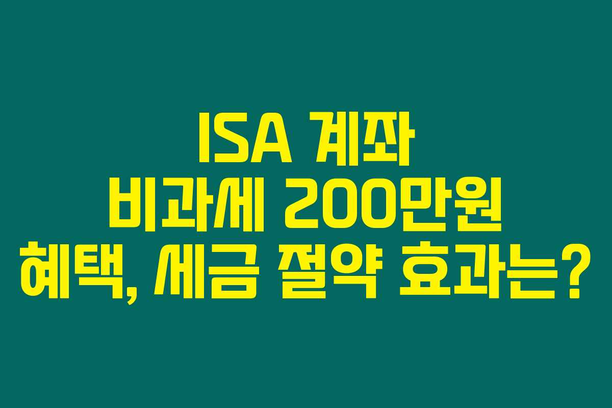 ISA 계좌를 활용하는데 비과세 한도가 200만원이면, 과연 어떤 세금 절약 혜택이 있는지 궁금하지 않으세요? ISA 계좌에서 배당과 이자 수익을 더해 200만원을 받을 경우, 어떻게 세금이 절감되는지 아래에서 확인해보세요!