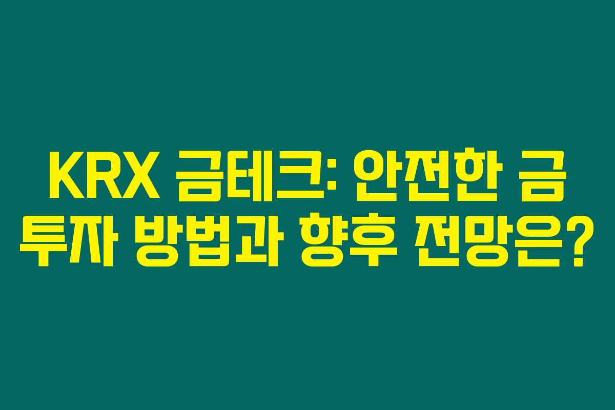 KRX 금 거래는 한국거래소를 통해 금 현물을 거래하는 방법으로 안전하고 비과세로 알려져 있습니다.