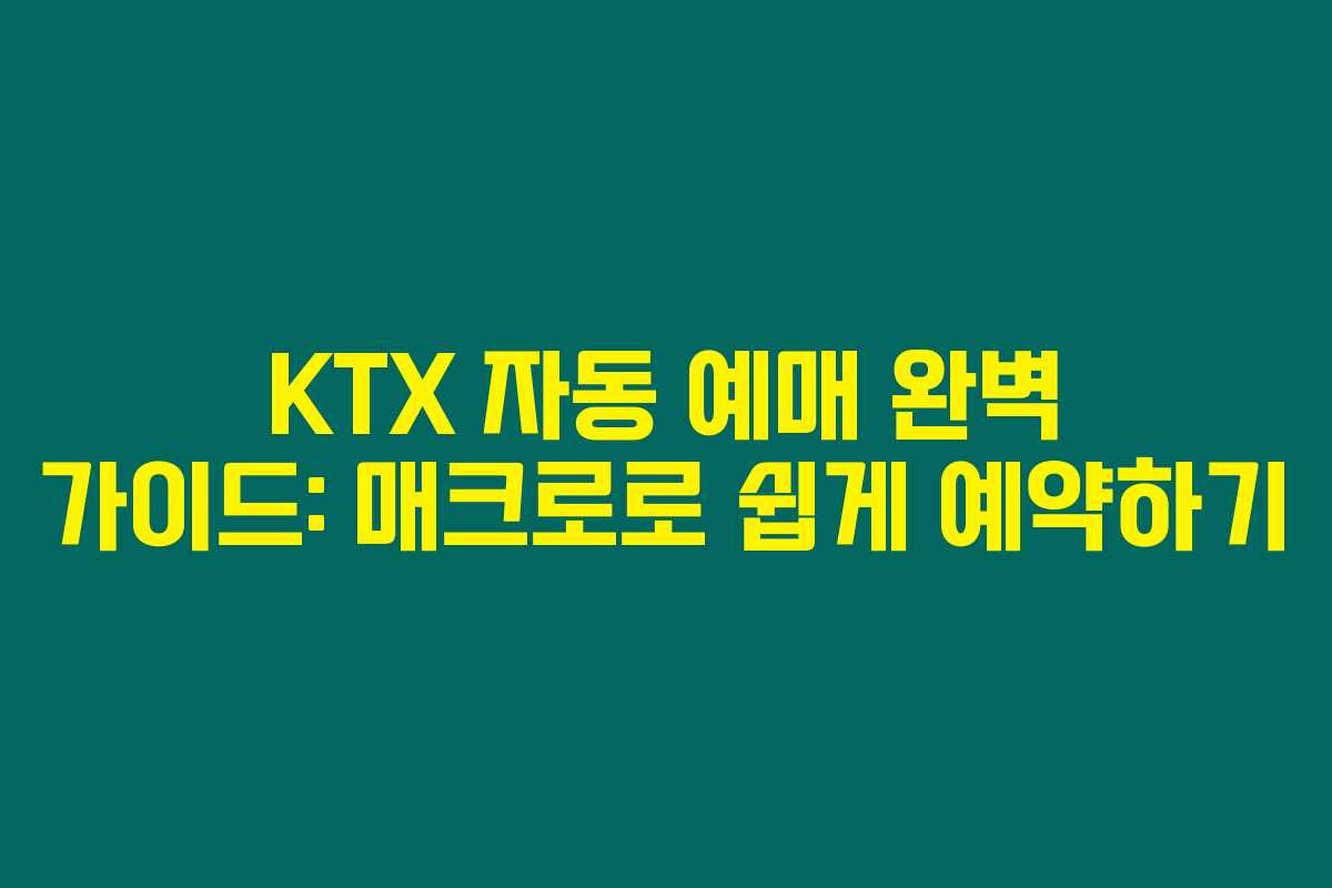 KTX 자동 예매 완벽 가이드: 매크로로 쉽게 예약하기