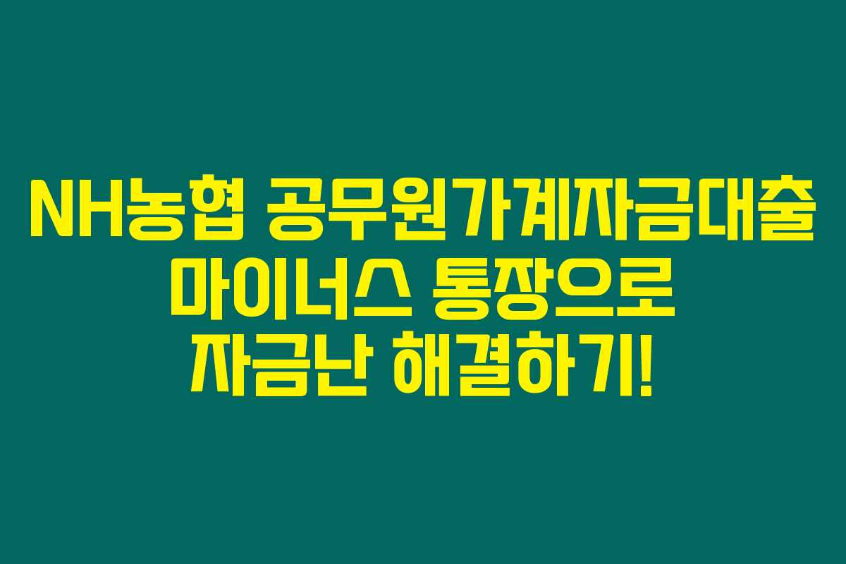 자금이 필요해서 빚을 지기 망설이고 있다면, NH농협의 공무원 가계자금대출 마이너스 통장이 좋은 해결책이 될 수 있습니다. 공무원으로 재직 중이신 분이라면 더 빛나는 기회가 될 거예요. 아래를 읽어보시면, 이 대출이 어떤 조건과 혜택을 갖추고 있는지, 그리고 어떤 분들이 대상으로 하는지 보다 쉽게 알 수 있습니다.